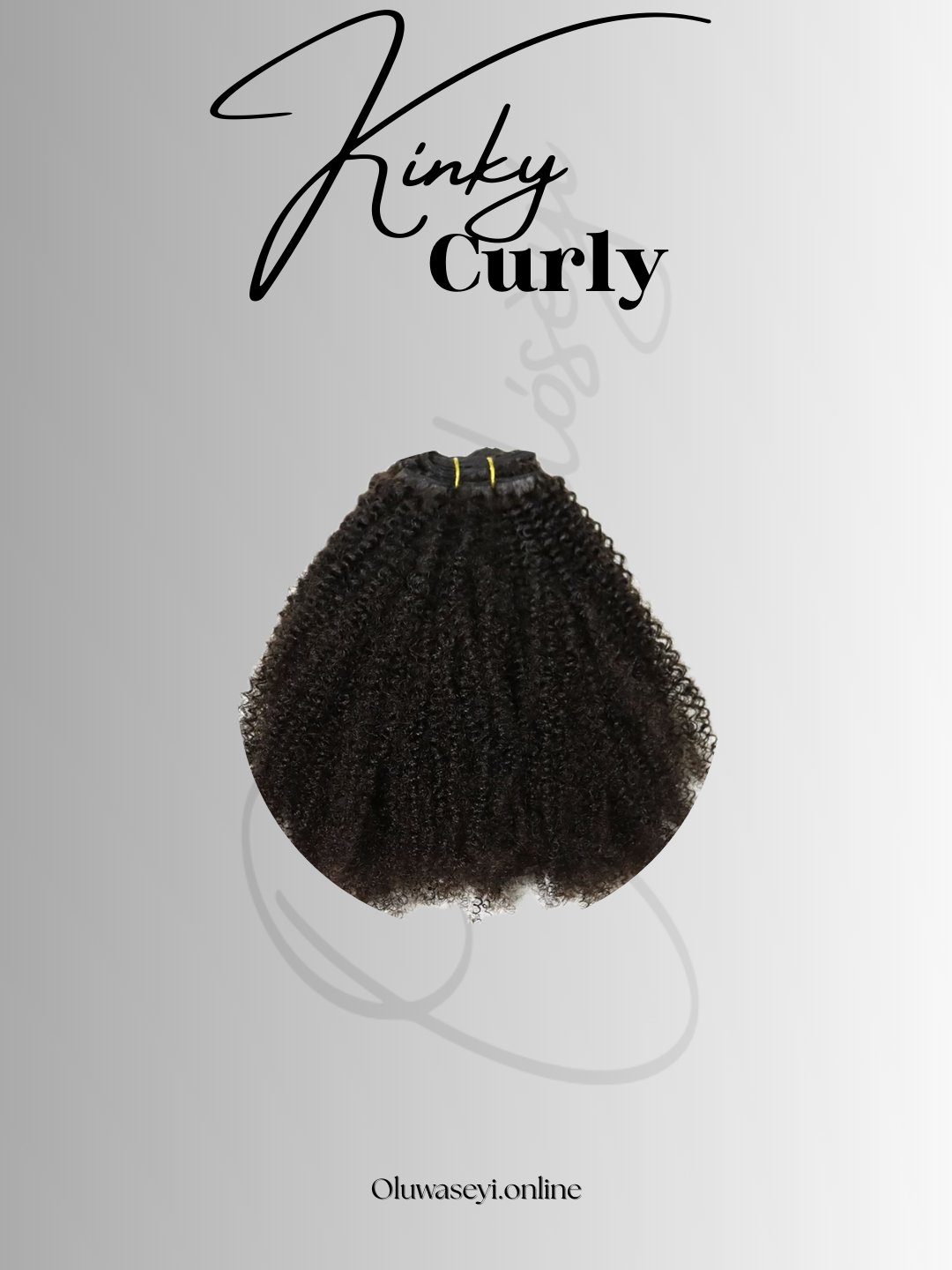 Embrace your natural beauty with our Kinky Curly Invisible Clip-In Hair Extensions — designed to perfectly blend with Type 4 hair textures for a soft, voluminous, and effortlessly natural look. Made from 100% Virgin Human Hair, these curls are rich, bouncy, and full of life, giving you instant definition and volume without compromising your natural texture. The invisible silicone-based wefts lay flat against your scalp, creating a seamless and undetectable blend. Perfect for adding fullness, length, or enhancing your curls for special occasions — these clip-ins deliver natural glamour in minutes. ✨ Features: 100% Virgin Human Hair Authentic Kinky Curly texture that blends with natural hair Invisible, lightweight silicone wefts for a flat and seamless finish Easy to install and remove Can be dyed, washed, and heat-styled with care Long-lasting with proper maintenance